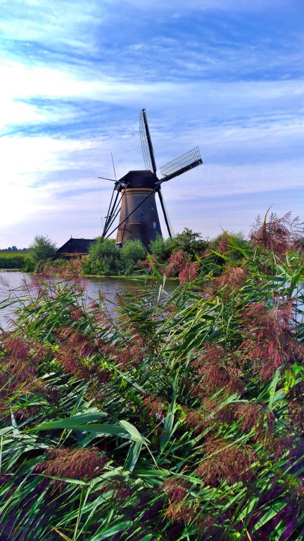 Kinderdijk: moinhos, vegetação e a água