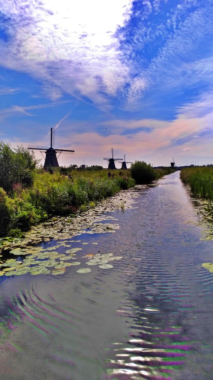Kinderdijk: composição com os moinhos e a água