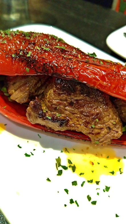 - Steak tips – carne marinada na casa e servida com pimentão vermelho