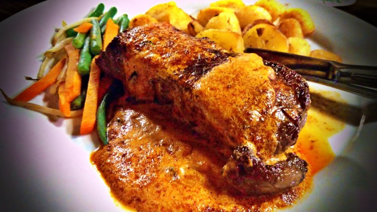 - Lamsrack – costela de cordeiro com batata aspargos e pesto verde