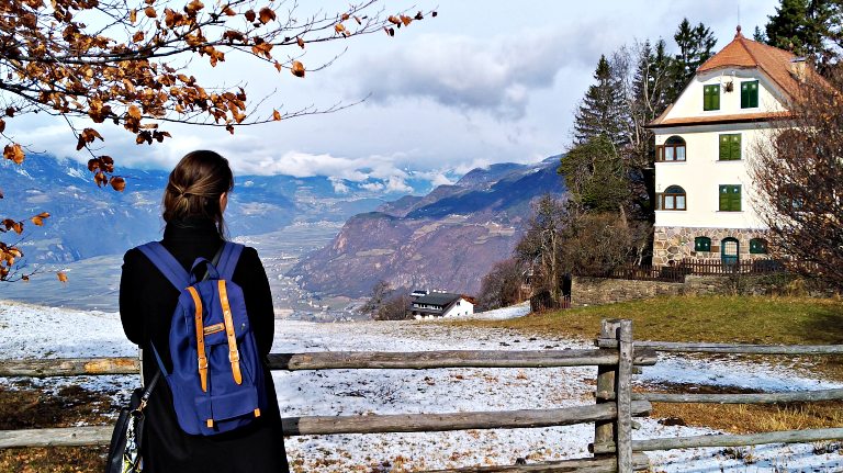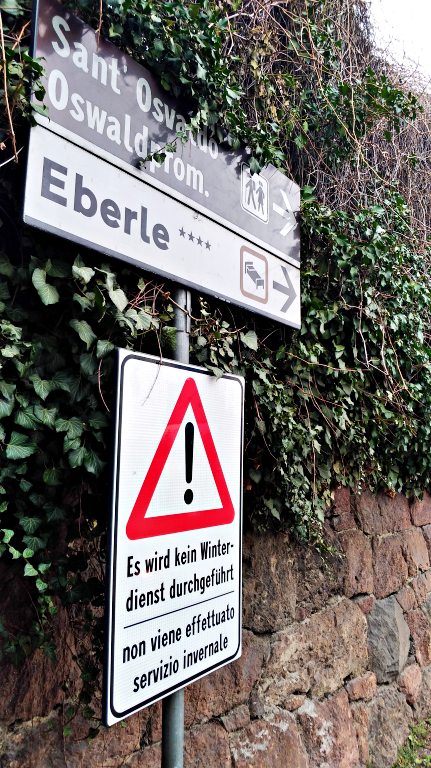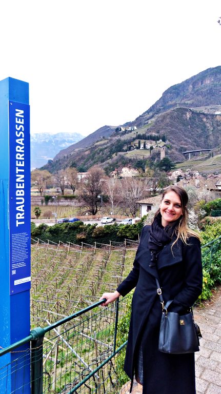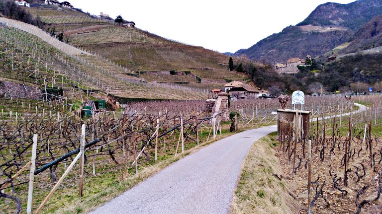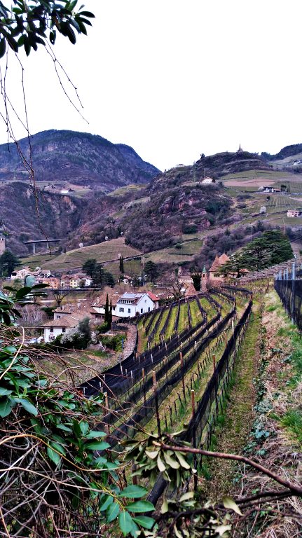 Apesar de ser um percurso sem grandes dificuldades do ponto de vista técnico, devo confessar que é mais puxado do que esperávamos. Especialmente porque envolve subidas e descidas pelas encostas que rodeiam a cidade. Se esse tipo de atividade não faz muito o seu estilo, é perfeitamente possível pegar o mesmo ônibus 12 de volta ao centro de Bolzano. Mas para quem estiver acostumado e disposto a uma boa caminhada, o panorama realmente compensa. Mesmo com os vinhedos bem sequinhos como estavam na época da nossa viagem, a experiência de contato com a natureza é bem agradável.