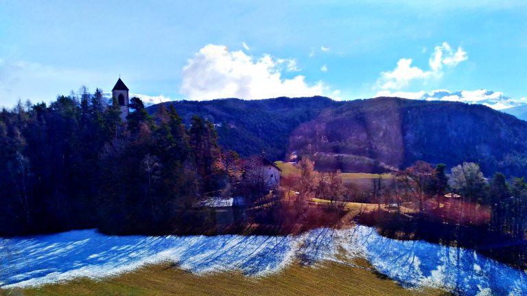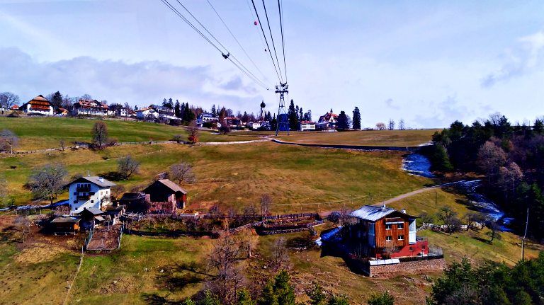 Já no topo, após o desembarque e uma pequena caminhada em meio ao bosque, avistamos o pequeno vilarejo de San Genesio. Não chegamos a visitá-la pois em nosso planejamento tínhamos somente os 30 minutos de intervalo até o próximo teleférico, e o foco principal era mesmo o visual do trajeto de subida e descida. Mas para quem tiver mais tempo ou dias de sobra em Bolzano, imagino que seja bem legal dar uma caminhada até lá e explorar a cidadezinha de San Genesio.