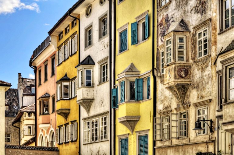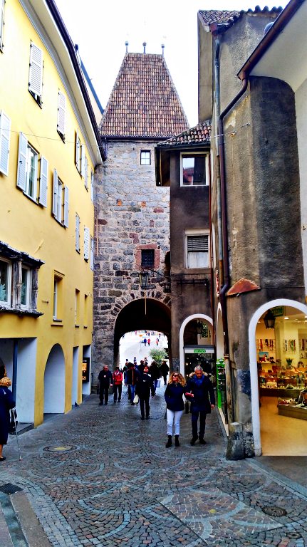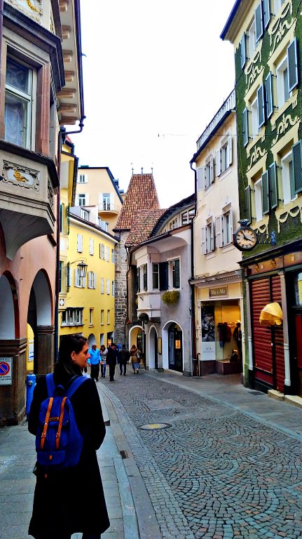 Todas elas representam o essencial do centro histórico de Bolzano: são ruas estreitas, com calçamento em pedra, repletas de edifícios com fachadas alegres em tons pastel e arcadas que costumam abrigar lojas tradicionais da cidade. Algumas delas inclusive possuem placas de ferro forjado super típicas indicando o tipo de estabelecimento comercial.