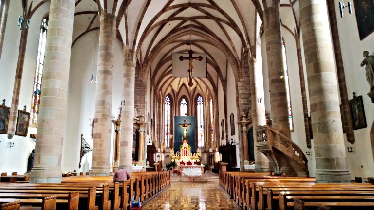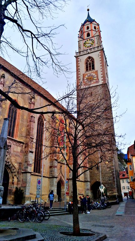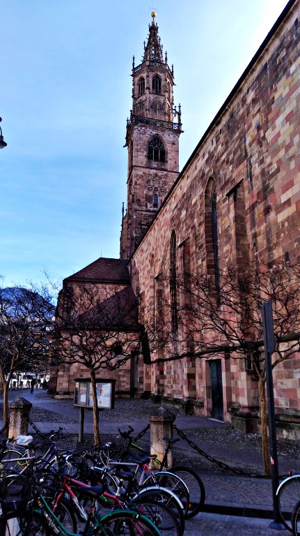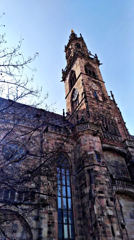 Saindo da Piazza Walther, basta atravessar a rua para chegar até a Catedral de Bolzano (Duomo di Bolzano). Entre os tesouros de Bolzano estão algumas igrejas e conventos espalhados pelas ruas da cidade, mas sem dúvidas essa Catedral que remonta ao século XII merece lugar de destaque como a principal igreja de Bolzano. Dedicada a Santa Maria Assunta, a Catedral de Bolzano chama a atenção pela fachada em pedras de tons amarelos e vermelhos e pela arquitetura que combina estilos gótico e românico, culminando na bela torre sineira de 65 metros de altura.
