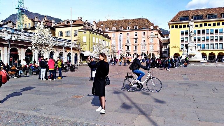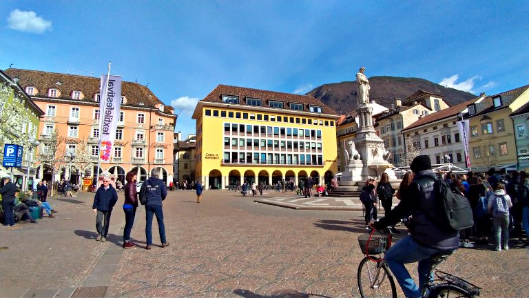Cercada pelas montanhas ao fundo e ornamentada pela imponente Catedral de Bolzano (do outro lado da rua), a praça costuma atrair muita gente por conta do visual belíssimo para fotos ou somente para desfrutar da cidade. Além da Igreja, os arredores da praça Walther também concentram alguns dos principais restaurantes, bares e lojas de Bolzano, além de ruazinhas medievais – daquelas ideais para “se perder” sem rumo enquanto conhecemos a cidade e seus encantos.