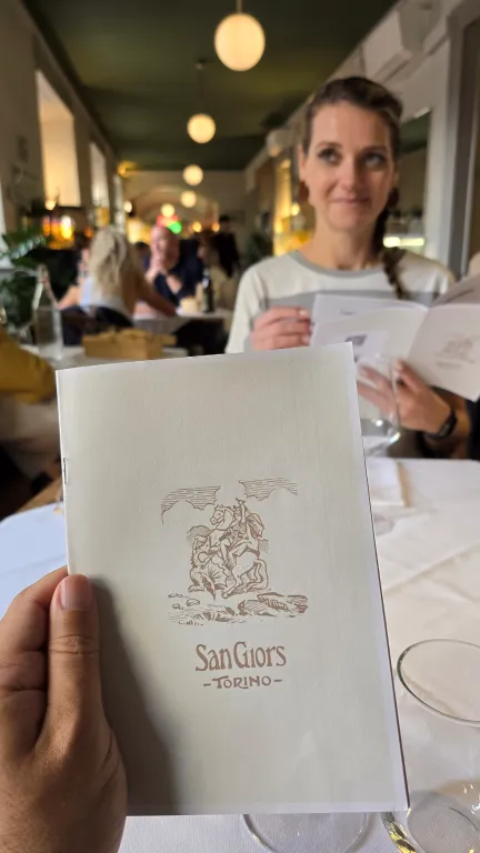 Ligeiramente afastado do roteiro turístico mais convencional (mas ainda assim próximo ao Musei Reali), o restaurante fica localizado no bairro Porta Palazzo, conhecido por seu enorme mercado ao ar livre e um clima popular e autêntico. Aliás, autenticidade é uma boa palavra para definir o Albergo Ristorante San Giors. Por dentro, o restaurante combina o charme histórico com um toque artístico e acolhedor: tetos com afrescos restaurados, arte contemporânea nas paredes, mesas em madeira com toalhas brancas e janelas grandes que deixam a luz natural entrar. Um ambiente convidativo e sem pressa, perfeito para quem quer sentar, abrir uma garrafa de vinho piemontês e aproveitar uma boa conversa.