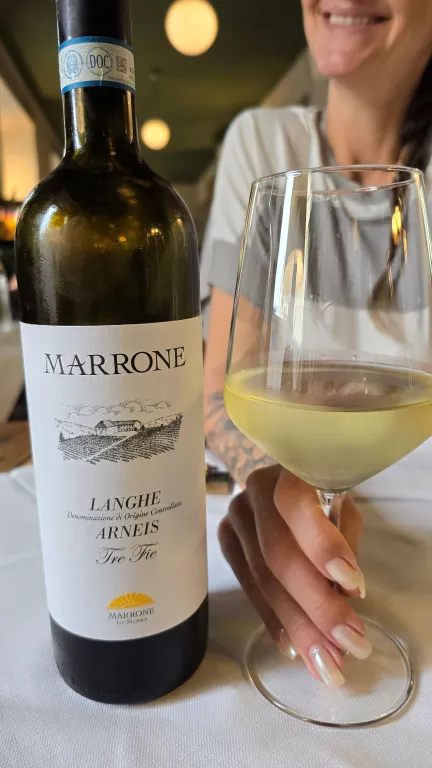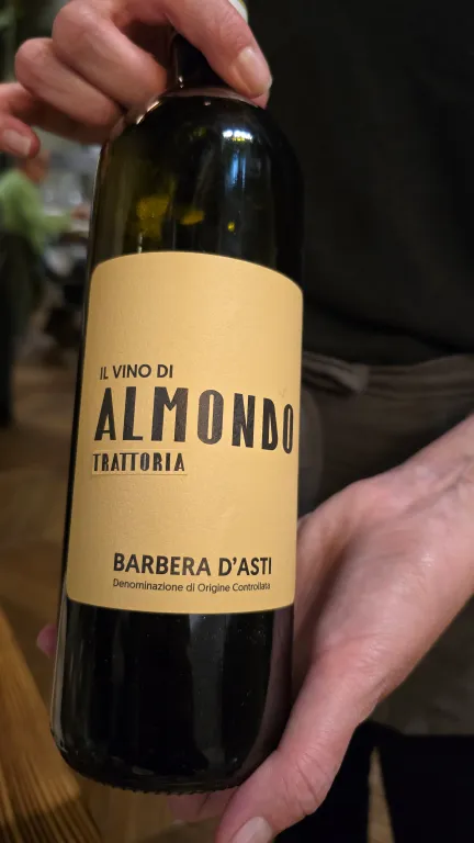 Para harmonizar com tudo isso, é claro que o Almondo Nuovo traz uma carta de vinhos bem pensada, com rótulos do Piemonte e de outras regiões italianas — servidos em garrafa ou em taça. Nossa escolha foi por dois vinhos locais: uma taça de branco da uva Arneis (Terra Alfieri) e um tinto “da casa” Barbera d’Asti.