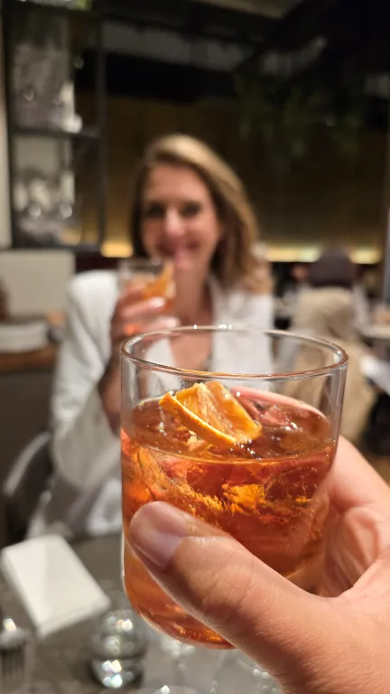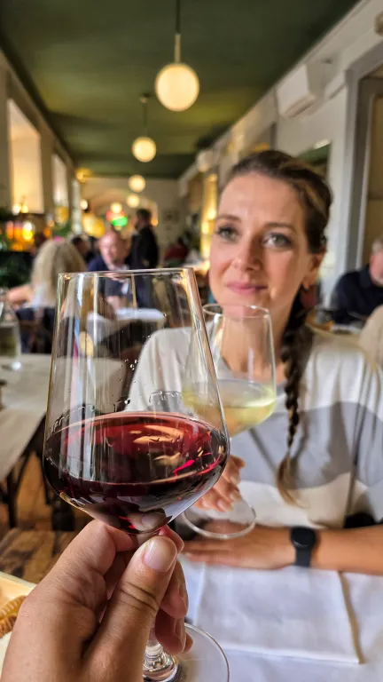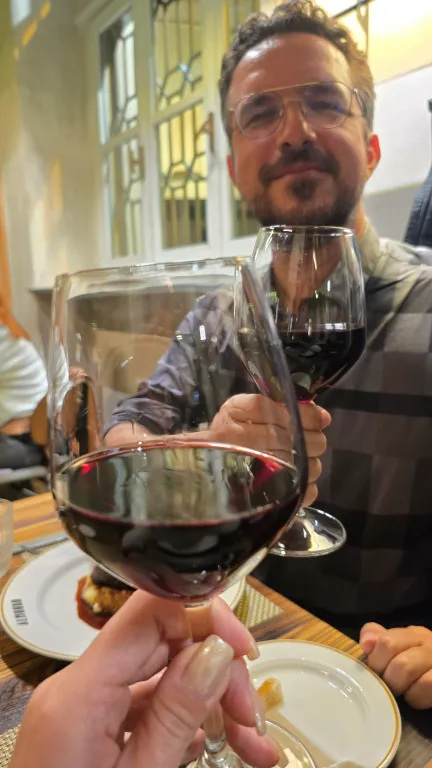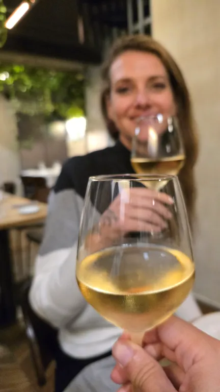 Mas aqui no Carlo e Camillo Bistrot, ele propõe uma experiência bem mais acessível, sem abrir mão da qualidade e do respeito à cultura local. Apesar do ar refinado e do ambiente elegante, o atendimento é descontraído e cordial. Durante nossa visita, vimos um público bem variado, desde famílias locais a outros casais de turistas e amigos em bate-papo aproveitando uma boa taça de vinho — sinal de um lugar que consegue ser sofisticado sem perder a hospitalidade.