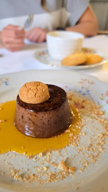 Para as sobremesas, impossível fugir de um clássico dos restaurantes típicos de Tuim: o bonet piemontês, clássico pudim a base de chocolate, café e amaretto, servido com calda de caramelo e biscoitinho crocante por cima. Outra opção interessante é o biscotti mergulhado em zabaione fresco, um creme aromático de gemas e vinho doce que traz um final leve, mas marcante para a refeição.