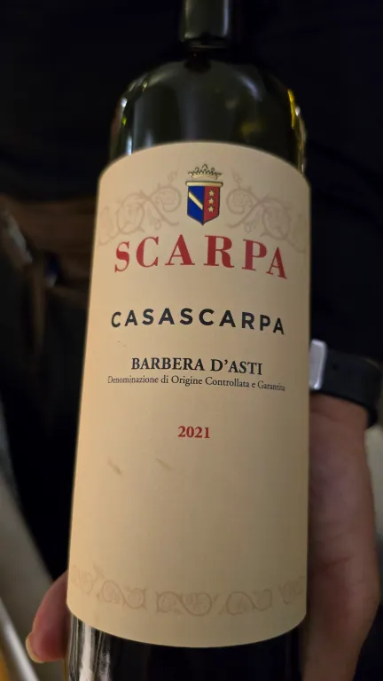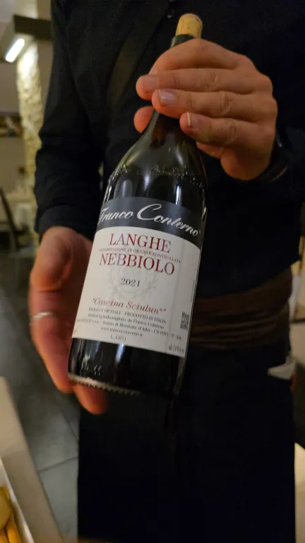 A carta de vinhos valoriza os rótulos do Piemonte, com destaque para as principais cepas locais: Barbera d’Asti e Nebiollo. Entre as opções de vinhos servios em taça, optamos pelo Barbera d’Asti Scarpa 2021, um tinto de acidez viva e taninos macios, perfeito para entradas e massas, enquanto o Langhe Nebbiolo Franco Conterno 2021 harmonizou muito bem com o prato de carne por conta de sua intensidade e complexidade.