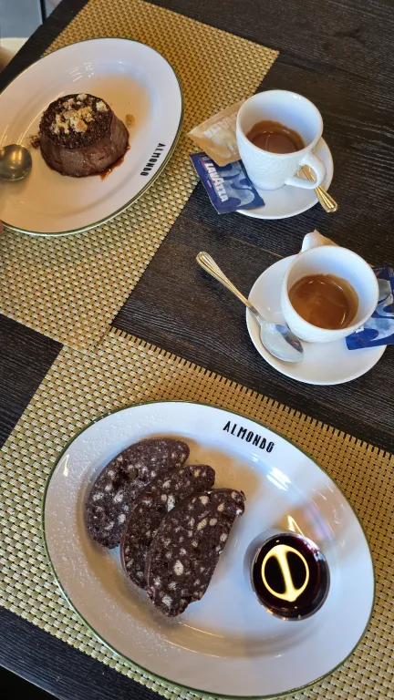 Mas como já dissemos, há sempre a opção de tomar um café completo, com brioches frescos, tortas caseiras, doces tradicionais piemonteses e até algumas opções salgadas para quem quer um lanche mais reforçado. É o tipo de lugar em que dá vontade de voltar em horários diferentes do dia para experimentar um pouco de tudo.