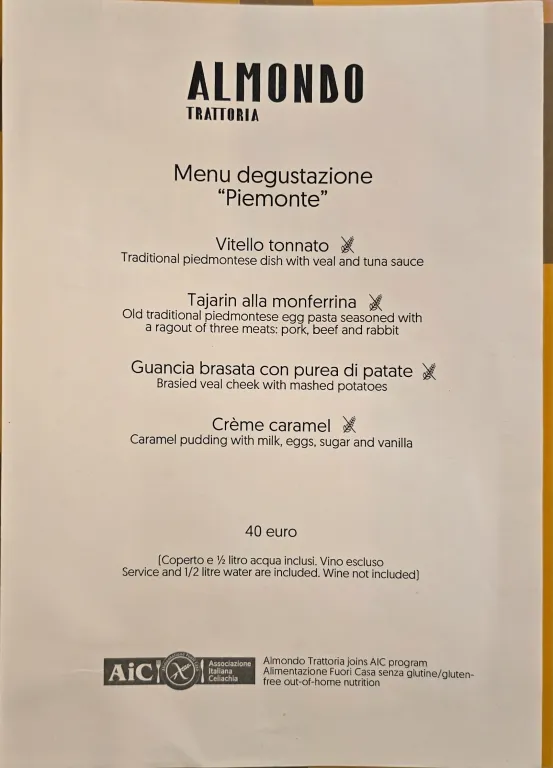 A Almondo Trattoria é a escolha certa para quem quer provar o Piemonte mais autêntico e ainda ter a opção de experimentar especialidades de outras regiões da Itália. As opções de menu degustação são uma ótima pedida para ter acesso a uma boa variedade de pratos a um preço fixo acessível. Receitas clássicas bem executadas, atendimento atencioso e um clima elegante, mas acolhedor, fazem do restaurante uma ótima sugestão para quem quer comer bem em Turim.