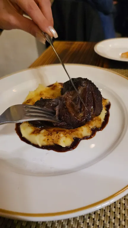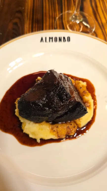 O secondo piatto do Menu degustazione “Piemonte” foi o Guancia brasata con purea di patate — bochecha de vitela cozida no vinho com purê de batata, regado em um molho repleto de sabor. Mais uma especialidade da região preparada de maneira bastante competente pela equipe do Almondo. Para quem desejar pedir um segundo prato adicional, há diversas outras opções, incluindo receitas de outras regiões da Itália, como o Baccalà alla vicentina, prato típico da região do Veneto, que experimentamos em outra viagem onde estivemos por lá.