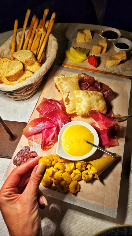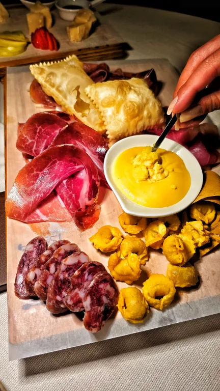 Vale destacar a apresentação impecável e a boa quantidade — apenas uma entrada já teria sido suficiente para dividir entre um casal, mas como não é sempre que “visitamos” a Emillia-Romagna, resolvemos exagerar um pouquinho. Ambas são perfeitas para compartilhar e explorar as delícias da Emilia-Romagna.