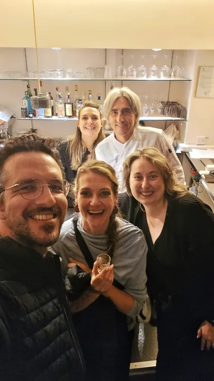 Um detalhe que fez toda a diferença no La Ferramenta del Gusto Emiliano e merece ser destacado foi foi o atendimento: atencioso e ágil, com uma simpatia genuína, verdadeiro prazer em nos receber. A nossa atendente, inclusive, falava diversos idiomas além do italiano — o que facilita muito para quem não domina o idioma local. Ao final, até nos ofereceram uma dose de licor digestivo como cortesia e fizemos essa foto simpática com toda a equipe!
