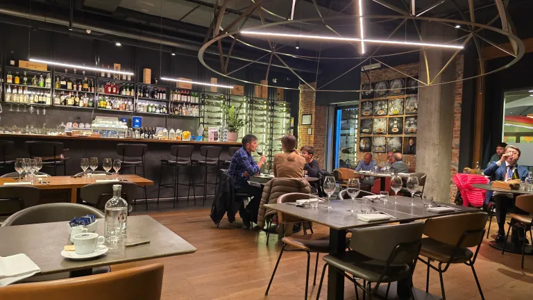 Funcionando desde 1996 no centro de Turim, em uma rua tranquila perto da elegante Piazza Bodoni e a poucos passos da estação Porta Nuova, o Kipling combina bem o espírito local com uma vocação internacional. O nome em inglês já entrega a ideia de um restaurante aberto ao mundo — e o grande diferencial está no horário de funcionamento flexível: ao contrário de muitos lugares tradicionais que fecham entre o almoço e o jantar, o Kipling mantém a cozinha aberta o dia todo, pronto para receber quem chega cedo para almoçar, quem quer jantar tarde ou simplesmente fazer uma pausa com uma taça de vinho no meio da tarde.