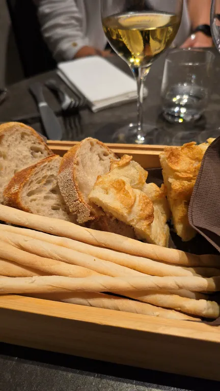 O cardápio respeita a tradição piemontesa, mas não tem medo de brincar com referências de outras regiões e até de outros países. Um detalhe legal que descobrimos já no restaurante é que o sous-chef é brasileiro — e, inclusive, criou um Bobó di Camarão que aparece como sugestão do menu em homenagem ao Brasil. Saber que o sous-chef brasileiro, com experiência no estrelado Carignano, também colabora com o menu dá um toque especial ao lugar, mostrando como a cozinha é aberta a referências, mas sem perder suas raízes no Piemonte. Mas é claro que não pedimos o bobó de camarão, afinal, como dizia meu avô, “bobó de camarão eu tenho em casa”, e o foco aqui é na gastronomia italiana!