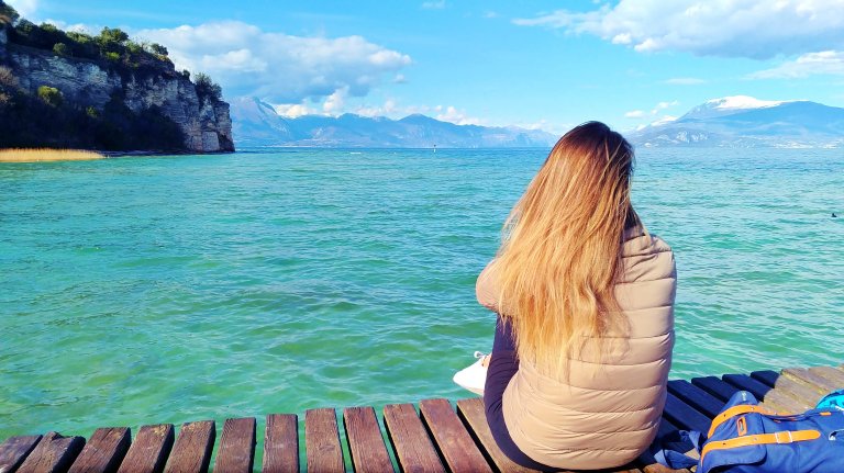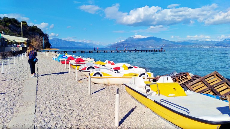 Caminhando pela orla à beira do lago di Garda, em Sirmione