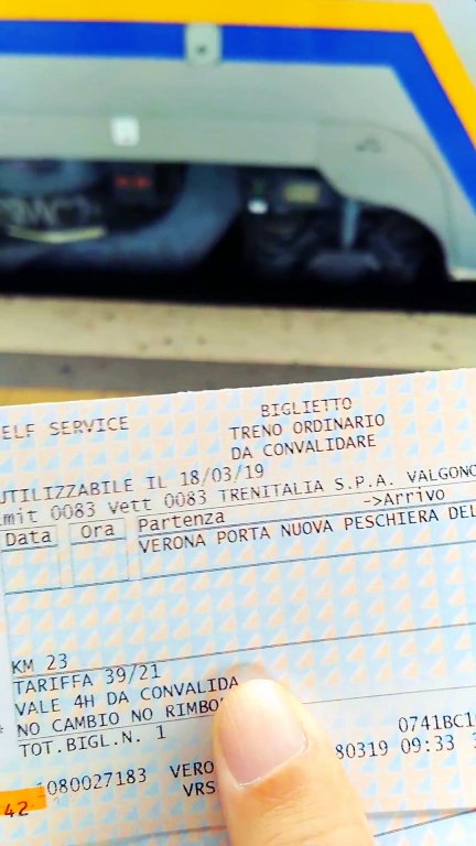 Partimos de Verona em direção a cidade de Peschiera Del Garda de trem, por volta de 9h30min da manhã. Compramos nossos bilhetes na própria estação Verona Porto Nuova por apenas €3,55 cada. Importante lembrar que na Itália, ao comprar seu bilhete de trem na estação, é necessário validá-lo em máquinas localizadas nas plataformas.