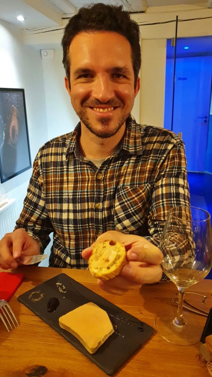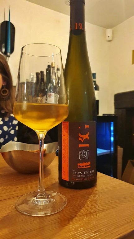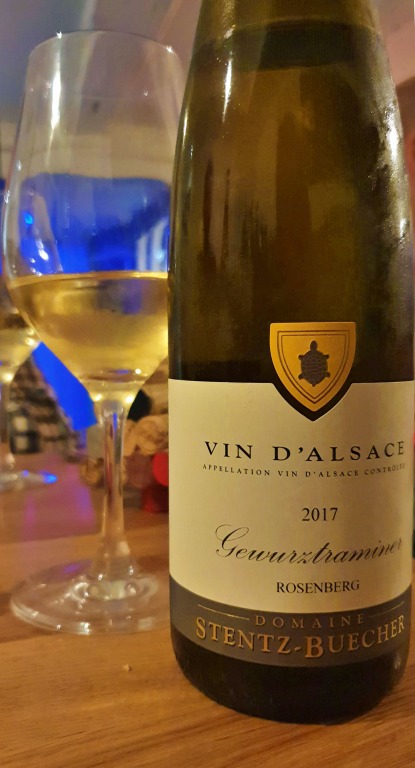 Para harmonizar com o foie gras, dois vinhos brancos um pouco mais doces, o Gewurztraminer Rosemberg Bio (2017) da vinícola Stentz-Buecher e o Pinot Gris Grand Cru Eichberg da vinícola A. Stoffel. Combinação perfeita!
