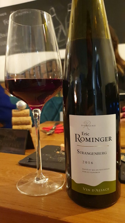 Na sequência, dois tintos da região – sim, na Alsácia também se produz vinho tinto! Experimentamos o Eric Rominger Strangenberg Pinot Noir (2016) e o René Muré Côte de Rouffach Pinot Noir (2016). Vinhos frescos, frutados e com notas de frutas vermelhas.