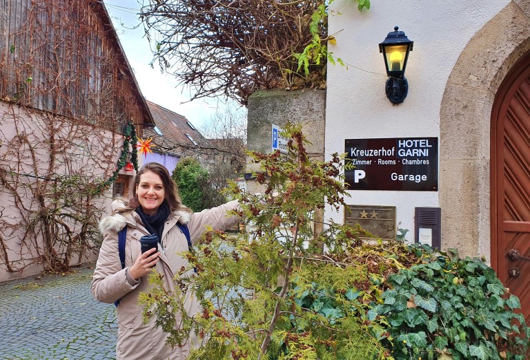 No nosso caso, antes de partir para explorar a cidade, fomos direto fazer o check-in de deixar as malas no nosso hotel, o simpático e acolhedor Kreuzerhof Hotel Garni (onde passamos 1 noite em Rothenburg). Esse pequeno hotel familiar tem ótimo custo-benefício e fica situado no coração da cidade, em uma das ruas do centro histórico e dentro da cidade murada, bem pertinho de todas as atrações e a apenas 10 minutos da estação de trem.