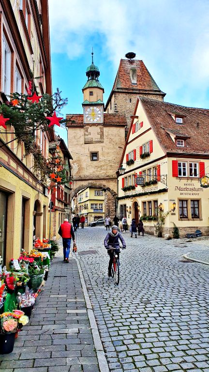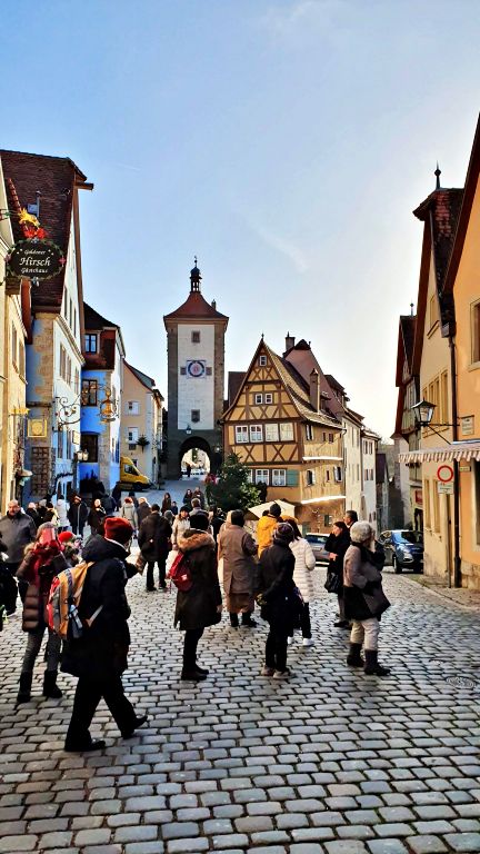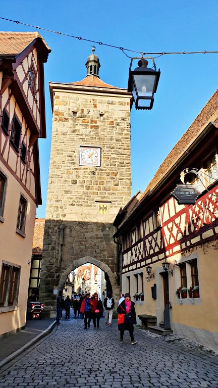 Na sequência, atravessamos o Sieberstorturm, antiga torre e portão de entrada da cidade que data do ano de 1385 e que fazia parte da muralha original da Rothenburg medieval.