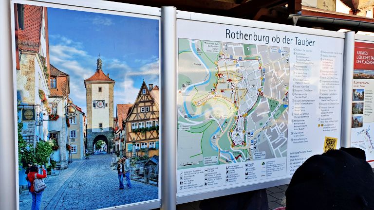 O percurso é relativamente bem sinalizado, e é possível saber em que parte da cidade você está e quais as informações relevantes para aquele momento. Por exemplo, ao passar pela Röderturm (torre sobre um dos portões de entrada da cidade), vimos uma pequena exposição sobre a reconstrução da parte antiga da cidade após a destruição na Segunda Guerra Mundial. Em alguns trechos do percurso há também placas nas paredes indicando o nome de doadores que contribuíram para a preservação da própria muralha e do centro histórico como um todo.
