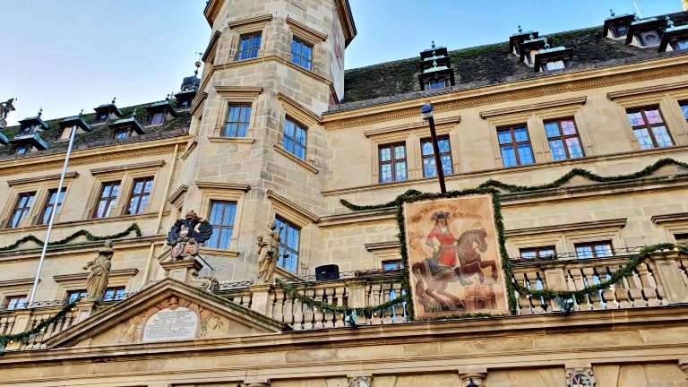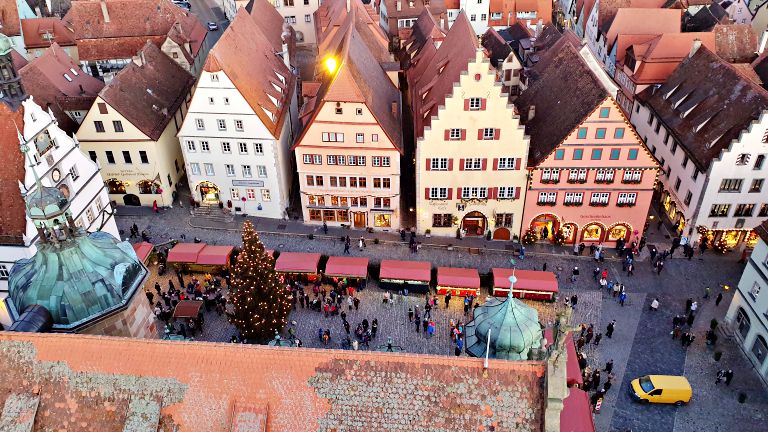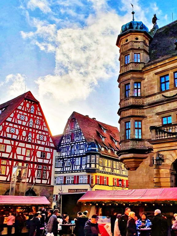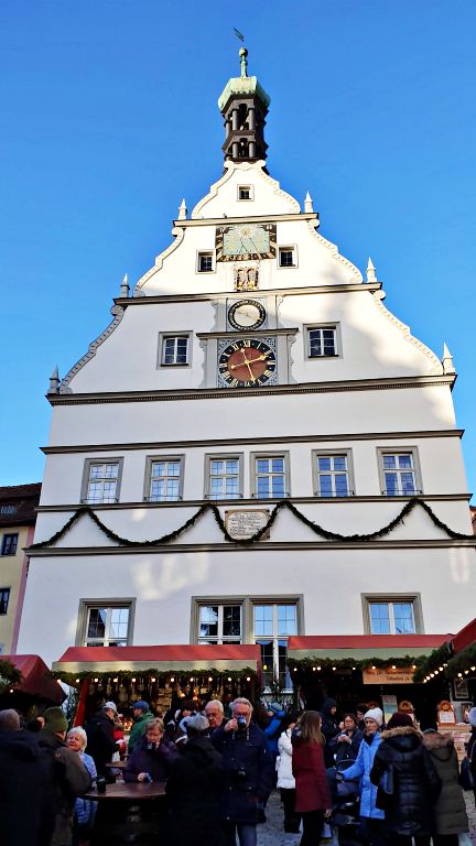 Independente da época do ano, a Marktplatz é daquelas praças que impressionam logo de cara. Dentre os belos edifícios e casas coloridas que circundam a praça, o primeiro destaque vai para a Rathaus — a Prefeitura de Rothenburg. Com sua bela arcada, sua fachada de estilo renascentista e suas torres imponentes, o edifício lembra um castelo ou palácio medieval.