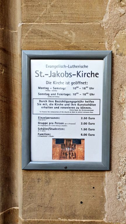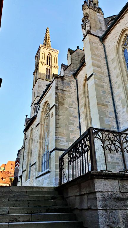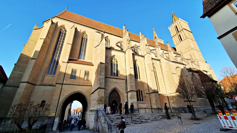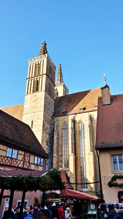 Depois de mais uma passadinha pela Marktplatz (eu já disse que todos os caminhos levam até lá, certo?), vale seguir até a Kirchplatz, onde fica localizada a principal Igreja de Rothenburg, a St Jakobs Kirche, ou Igreja de São Jacó.