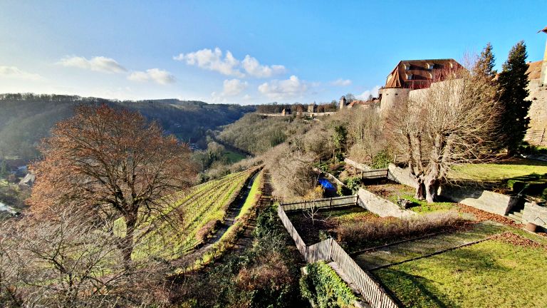 Essa dica eu confesso que não vi em outros blogs ou vídeos sobre Rothenburg, e descobrimos meio que ao acaso durante a nossa estadia pela cidade. Logo depois das fotos na Plönlein, decidimos pegar a esquerda e entrar nessa ruazinha estreita (1a foto do mosaico abaixo), onde nos deparamos com esse visual lindíssimo dos vinhedos e das paisagens rurais de Rothenburg. O nome do mirante no mapa é “Aussichtspunkt an der Eich”, e recomendamos fazer esse pequeno desvio para conhecer um outro lado de Rothenburg.