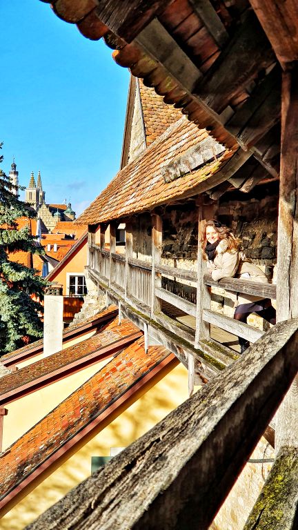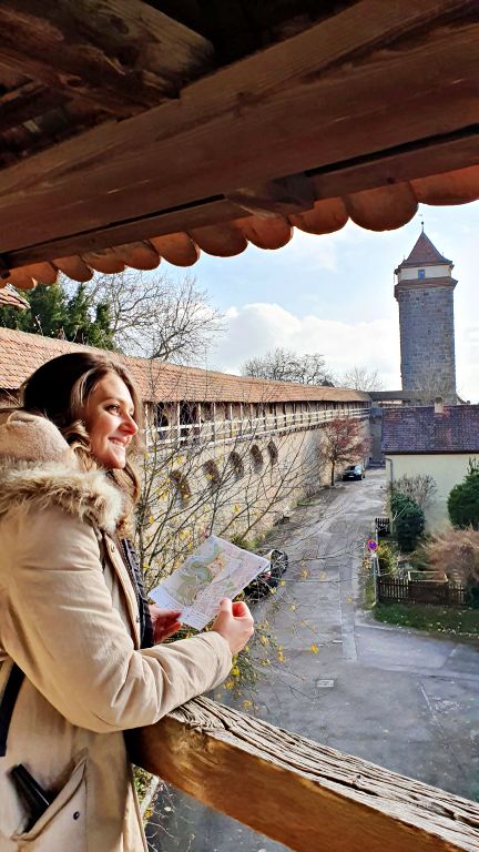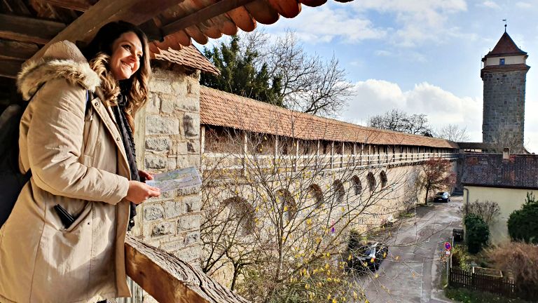 Além de todo o charme típico das cidades muradas, em Rothenburg ainda há um atrativo super especial: é possível caminhar sobre a muralha e percorrer sua extensão circundando toda a parte histórica. O trajeto como um todo tem aproximadamente 4 quilômetros e leva cerca de 2 horas para ser inteiramente percorrido, mas o mais legal é que existem diversos pontos de subida/descida ao longo de todo o trajeto. Ou seja, cada pessoa pode decidir onde subir, onde descer e o quanto está disposto a percorrer para observar Rothenburg de alguns dos pontos de vista mais impressionantes.