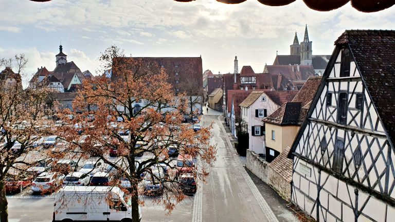 O carro alugado também pode ser uma boa opção, especialmente para quem estiver percorrendo toda a Rota Romântica da Alemanha. Nesse caso, será necessário estacionar o carro do lado de fora da cidade murada (não é permitido acessar o centro histórico de carro).