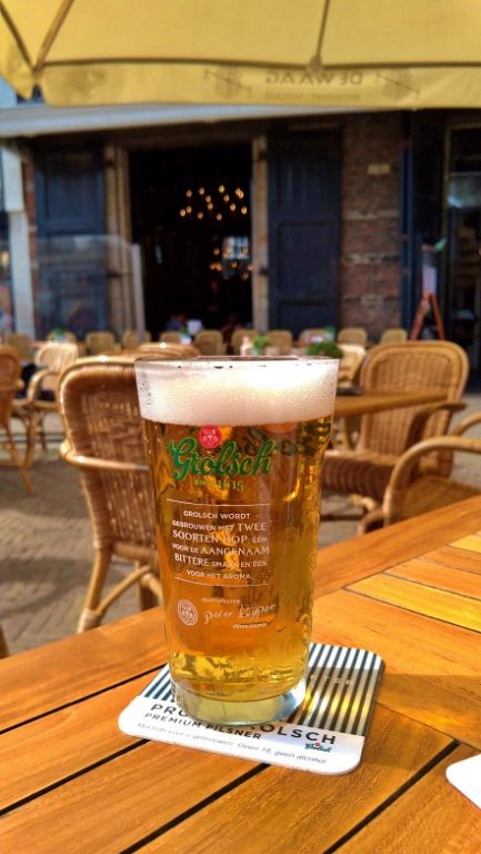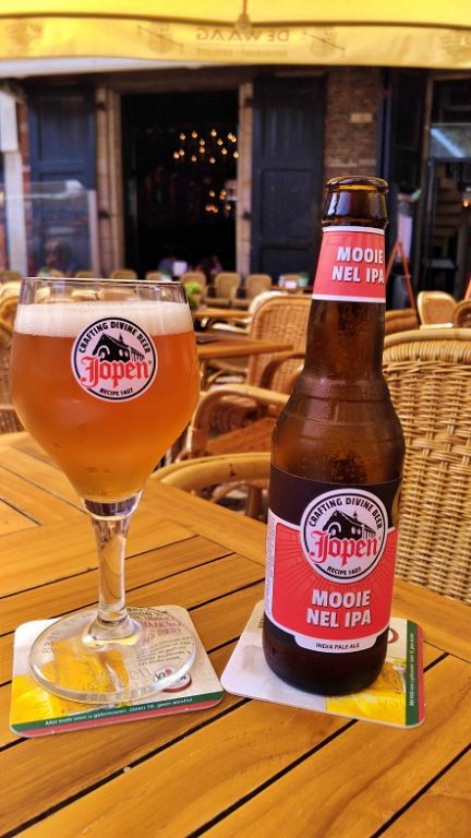 Na hora de fazer o pedido, começamos por duas cervejas locais: uma Grolsch (0,25l) e a Jopen Mooie Neil IPA 6,5%