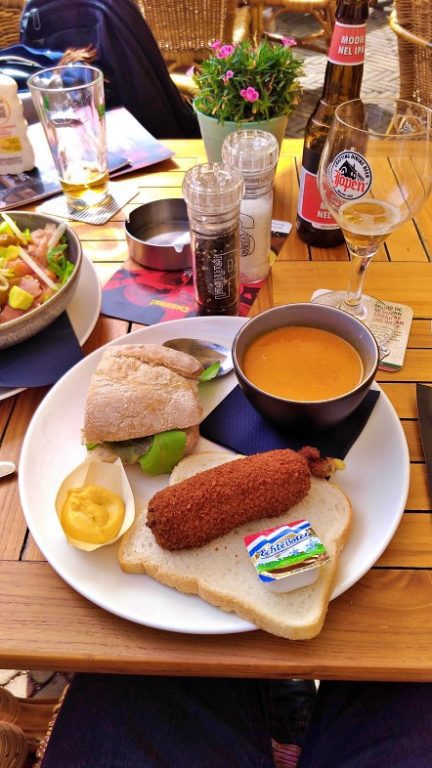 – “Twaalf uurtje”: a tradução seria algo como especial do meio-dia. Esse prato vem com a sopa do dia, um croquete de queijo, uma fatia de pão e o sanduíche do dia.