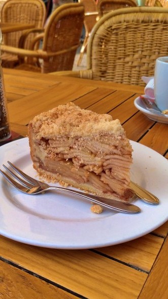 – Ambachtelijke appeltaart: Para fechar a refeição pedimos torta de maçã com creme e dois cafés.