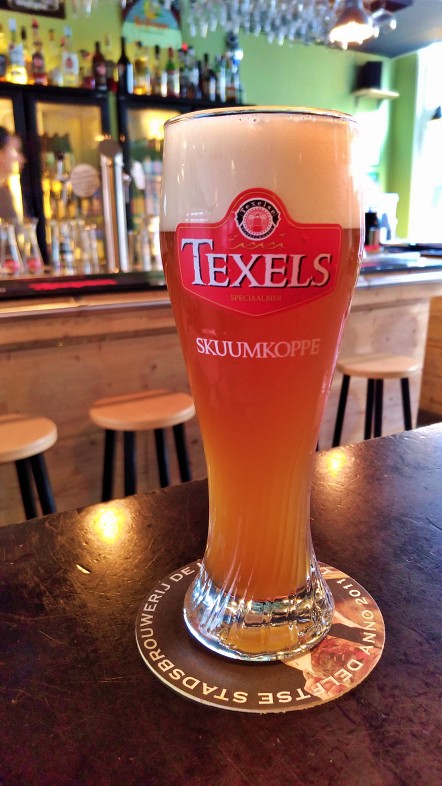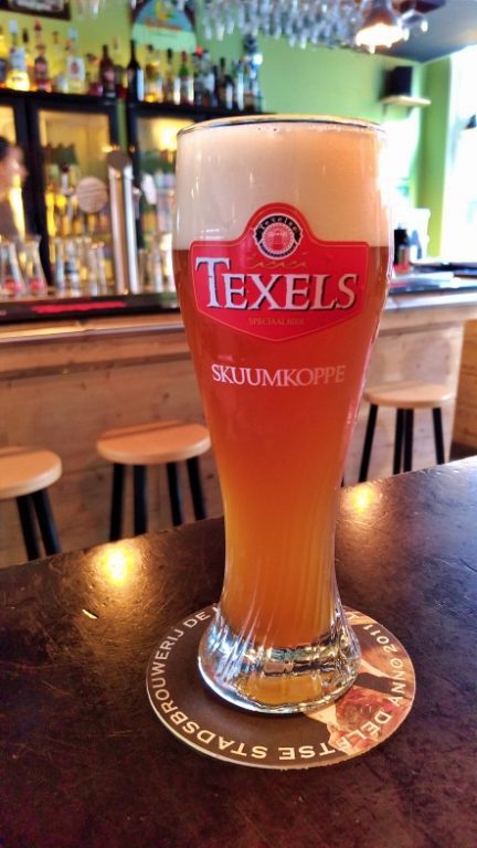 Nosso foco era experimentar as opções disponíveis da cervejaria local. Das 4 cervejas que bebemos, pelo menos 3 foram da De Koperen Kat – primeira cervejaria artesanal de Delft. Apenas uma foi da Texels, uma cervejaria holandesa localizada em Texel, uma cidade na maior das Ilhas Frísias, arquipélago no norte da Holanda. A seleção de rótulos foi seguimos as sugestões da equipe que estava atendendo e a sequência foi essa que apresentamos logo abaixo.