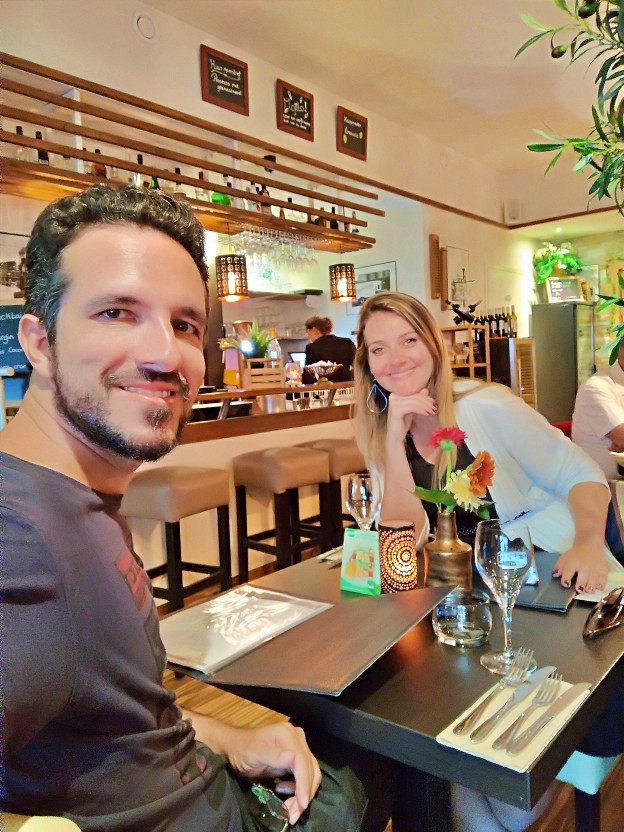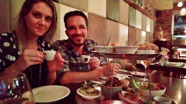 Fomos ao Moodz para jantar com a expectativa super alta. E não nos decepcionamos. O ambiente é alto astral e com público super variado: as mesas que acomodavam desde famílias até casais em clima mais intimista. Para comer, escolhemos como prato principal uma opção para compartilhar e o acompanhamento foi um clássico holandês. O principal era bem servido, composto por pequenas porções de pratos do cardápio. O propósito era justamente experimentar vários sabores, além do acompanhamento típico: batata frita com maionese! Para a sobremesa, seguimos o mesmo conceito de compartilhar pequenas porções das diversas opções de sobremesas do cardápio do Moodz. E para beber uma taça de vinho argentino para cada um.