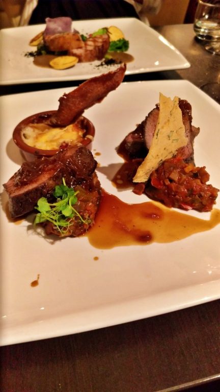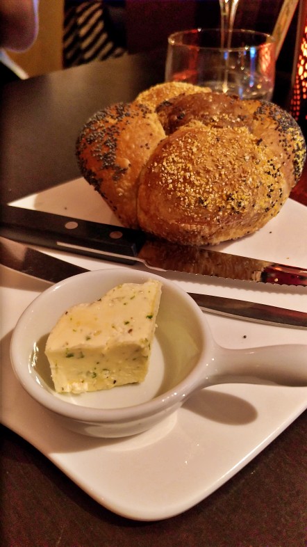 Já mencionamos que a nossa escolha foi o Menu Surpresa Het Vermeertje mas não falamos que optamos pela versão de 3 passos. Nessa opção são servidos entrada, prato principal e sobremesa, além do pãozinho quentinho com manteiga que é servido como aperitivo já incluso no serviço.