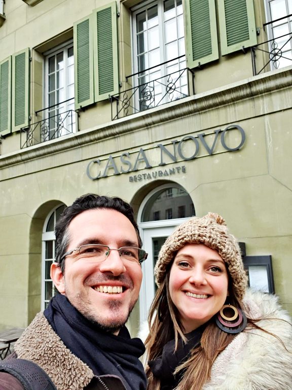 No centro histórico de Berna, capital da Suíça, é possível encontrar alguns bons restaurantes históricos de comida tradicional do país. Mas um em especial, situado em um belíssimo casarão às margens do rio Aar, se destaca entre os melhores da cidade com sua proposta de cozinha mediterrânea sazonal. A nossa sugestão de onde comer em Berna é o Casa Novo Restaurante & Vinoteca — que como vocês podem perceber, tem nome português, é de propriedade de uma família de espanhóis e tem uma cozinha requintada, inspirada na culinária mediterrânea da Península Ibérica, sempre fazendo uso de ingredientes locais e sazonais. Localizado em um dos extremos do centro histórico, bem pertinho da emblemática ponte Nydeggbrücke, o Casa Novo é a opção perfeita para a pausa do almoço (no caso de quem estiver seguindo o nosso roteiro de 1 dia em Berna) ou para um jantar especial (para quem pretende passar 1 ou mais noites hospedado em um dos hotéis da cidade). Nesse artigo a gente conta todos os detalhes da nossa experiência gastronômica no Casa Novo Restaurante & Vinoteca em Berna.