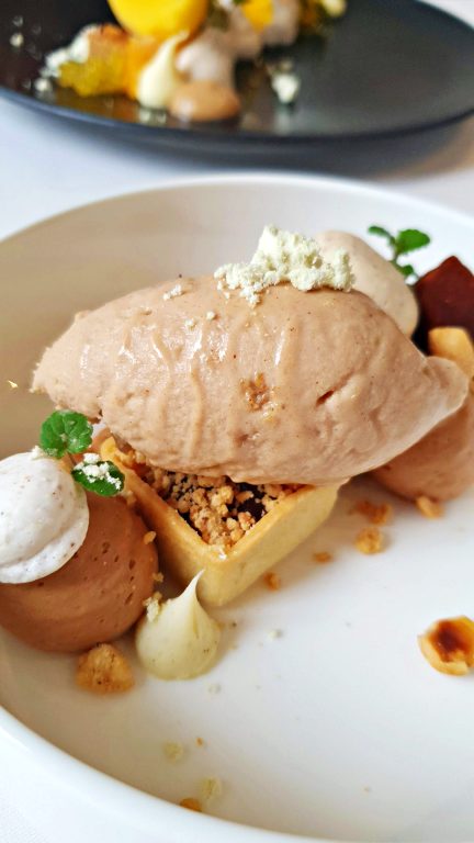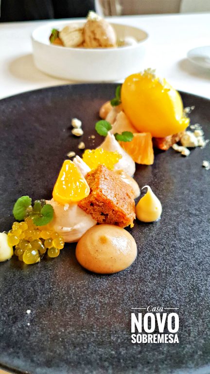 E se você assim como a gente não abre mão das sobremesas, certamente vai se deliciar com as opções do menu de 3 passos. No dia da nossa visita, experimentamos a sobremesa a base de tangerina em diferentes texturas com sorvete da fruta feito na casa e pedaços de pão de especiarias – o tradicional lebkuchen, mais uma influência do Natal no cardápio. A outra opção mais clássica agrada em cheio aos apaixonados por chocolate e avelãs: uma sobremesa com castanhas, sorvete de avelãs e chocolate suíço. Para acompanhar ambas as sobremesas, mais vinho — dessa vez um doce, o Marco Fabio Dulce Moscatel.