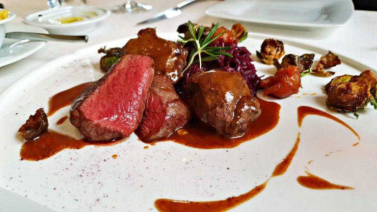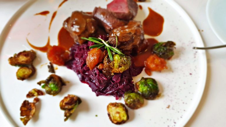 É verdade que a apresentação e a bela paleta de cores dessa entrada centralizam todas as atenções, mas é preciso destacar o sabor incrível da combinação, em especial o molho de repolho roxo que tangibilizou em nossas papilas gustativas a famosa “explosão de sabores”. Era época de Mercados de Natal na Suíça e essa entrada trazia um pouco dos aromas e sabores tão típicos dessa época.