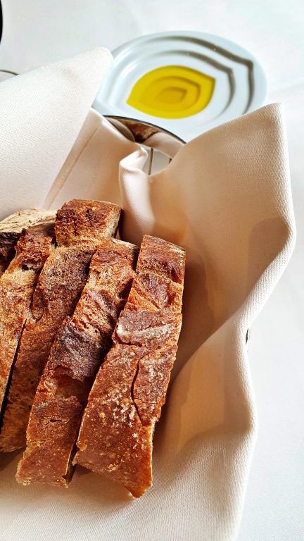 Se do lado de fora o restaurante encanta, o ambiente interno traz elegância e sofisticação na medida certa, sem abrir mão do conforto e da atmosfera amistosa que é reforçada pelo ótimo atendimento de toda a equipe — um dos pontos fortes durante toda a nossa experiência por lá. Daqueles locais em que você nem sente o tempo passar, especialmente se estiver na “companhia” de um dos vinhos em taça recomendados — no nosso caso, um vinho branco de produção suíça foi a escolha para acompanhar as fatias de pão artesanal com azeite trazidos como aperitivos.