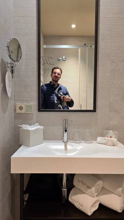 Pelo site do hotel, vimos que há opções de quartos com banheiros maiores e bancadas com pias duplas — se essa for uma feature importante para você, pode valer a pena pensar em um upgrade. No nosso caso, atendeu bem a uma estadia de 4 dias.