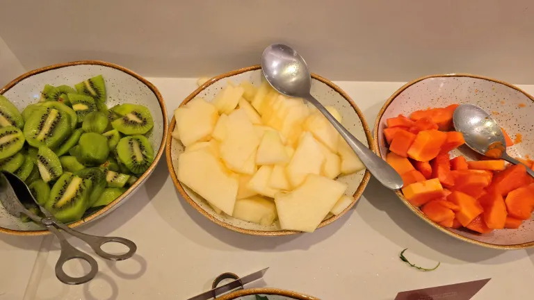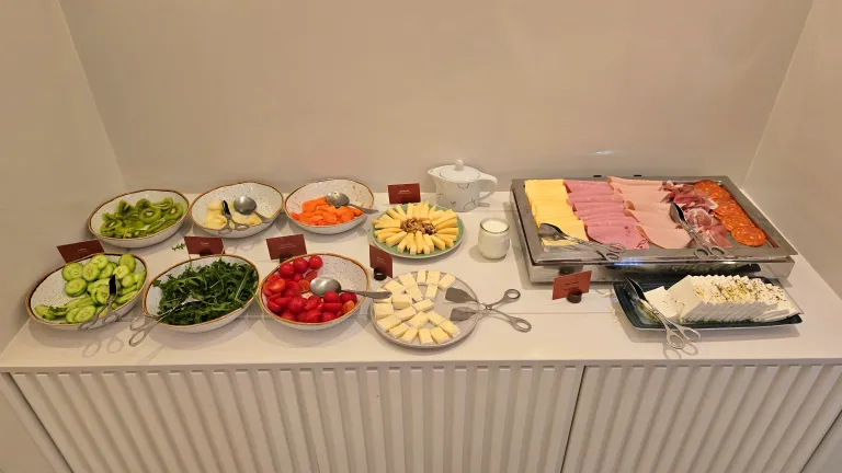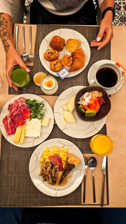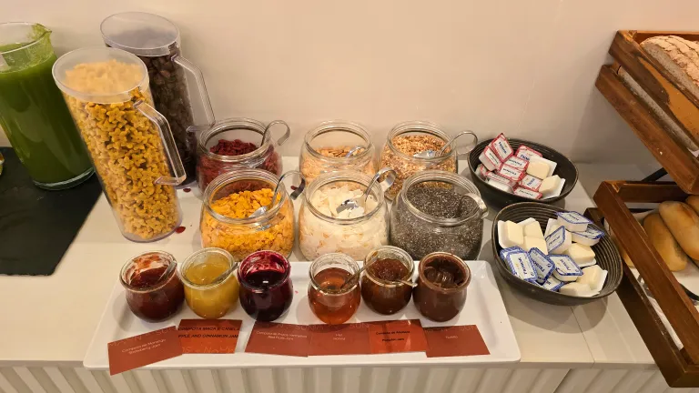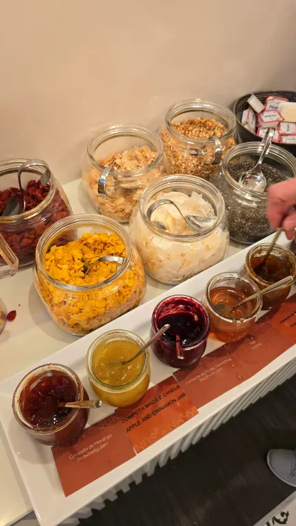 Servido ao estilo buffet, o café da manhã traz uma ótima variedade de frutas frescas, pães, queijos e frios, bolos caseiros, doces regionais, ovos preparados na hora e sucos. Há ainda alternativas para dietas especiais, como pães sem glúten e leites vegetais. Mas o que chama mais a atenção é a qualidade. Tudo é preparado com ingredientes de ótima qualidade, e sempre servido em pequenas porções e com um bom serviço de reposição para garantir o frescor de cada alimento. Desde as frutas frescas, passando pelas opções mais leves (como saladas, iogurtes, frutas secas e compotas de frutas), tudo estava muito saboroso e bem apresentado.
