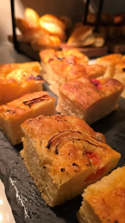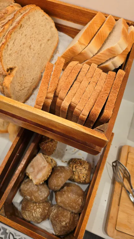 A oferta de pães salgados ou doces é igualmente bastante variada e de muito boa qualidade. Além das opções mais tradicionais que estão presentes todos os dias no buffet (como pães de forma ou croissantes), há sempre algumas novidades a cada dia, como a focaccia, quiches ou tortinhas salgadas.