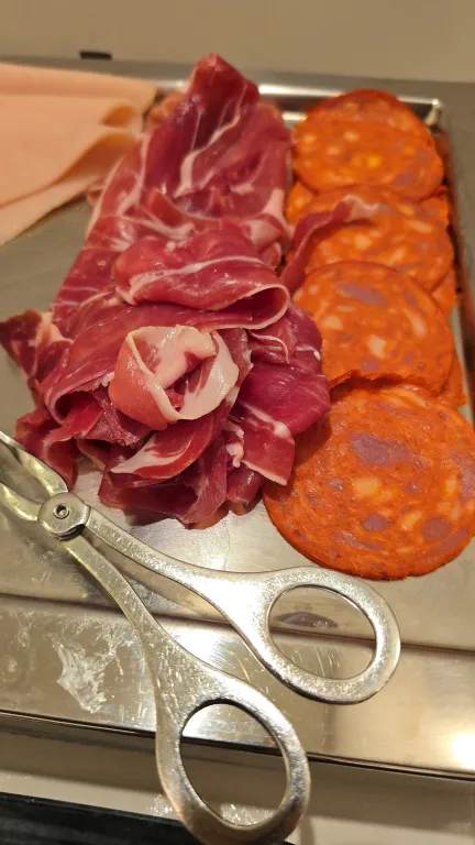 A mesa de queijos e frios também chama a atenção, trazendo sempre de 3 a 4 opções de cada item, mais uma vez com ótimo padrão de qualidade. Destaque para a ricota fresca e para os presuntos crus.