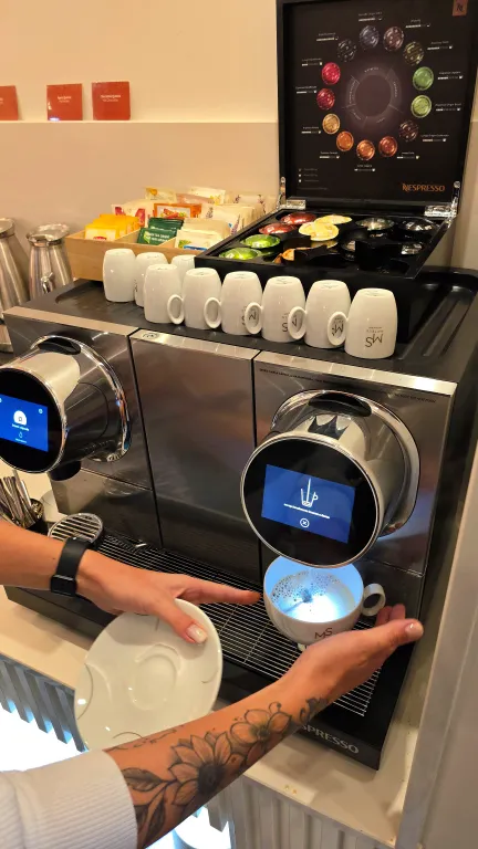 Na estação de bebidas quentes, a cafeteira Nespresso profissional com diversas opções de cápsulas dispensa maiores comentários.
