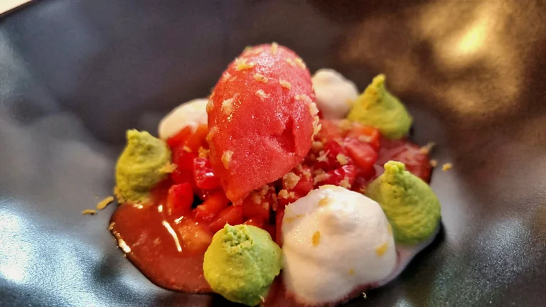 Fresas con espuma de limon, ganage de albahaca y sorbete de fresas | Restaurant Saó BCN
