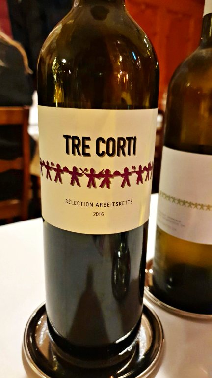 Passo 3: O passo seguinte trouxe um curioso corte de carne chamado Milchkuhentrecôte (ou Entrecôte de vaca leiteira) em dois diferentes preparos. No primeiro prato, a carne é cozida e servida ao molho sobre uma cama de quinoa e verdura crispy. No segundo prato, a carne é servida braseada no ponto exato com chutney de maçã, rabanetes e batatas confitadas em gordura bovina. O vinho servido foi o Les Mûres Petite Arvine.